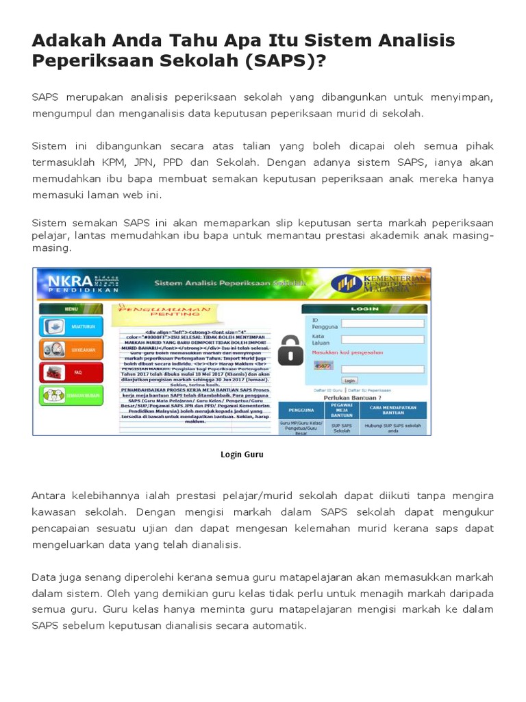 Login Saps Sistem Analisis Peperiksaan Sekolah Kpm Pendidik2u